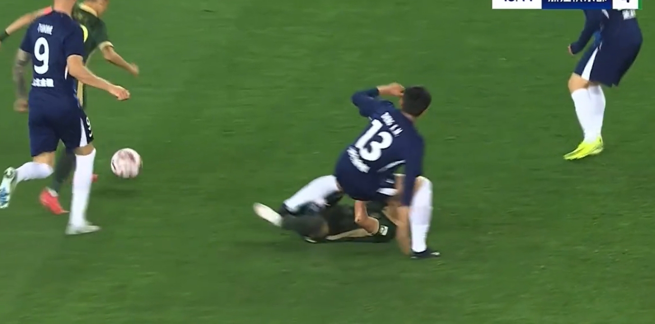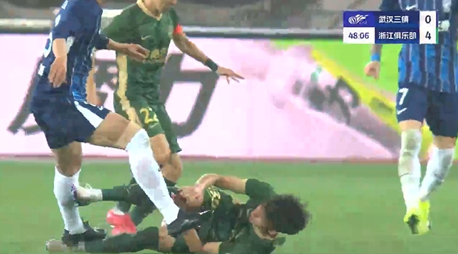 在比赛第47分钟,郑凯木从身后别倒王钰栋,同时在王钰栋倒地后,郑凯木落地正好踩中王钰栋脚踝,王钰栋痛苦倒地,随后受伤下场。